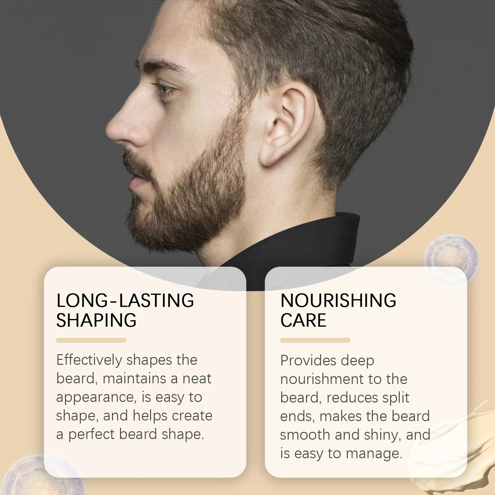 2.Enhance the texture of the beard, making the beard look more neat and stylish, while avoiding frizz and messiness. Provides deep nourishment to the beard, reduces split ends, makes the beard smooth and shiny, and is easy to manage.