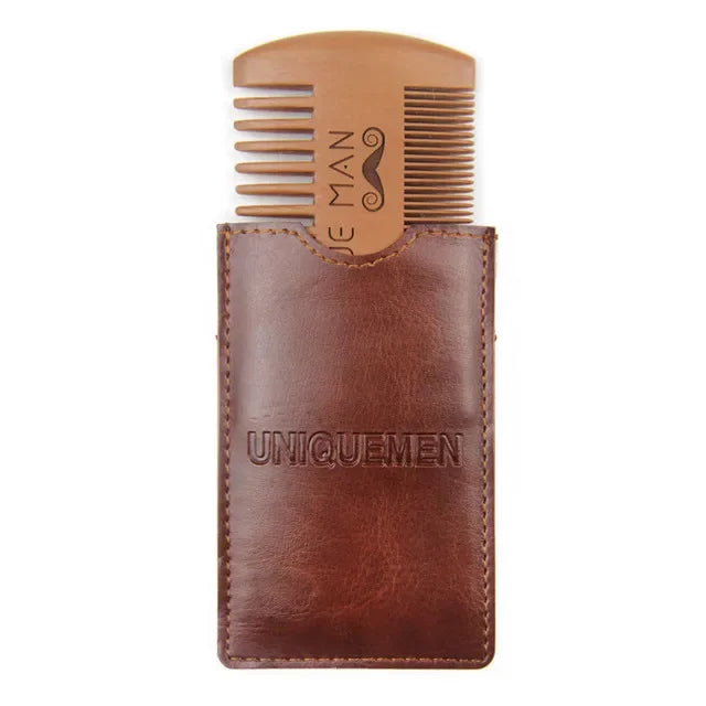 Men's Wooden Beard Comb with Leather Case Mustache Hair Comb For Men Fine Coarse Teeth Perfect Beard Balms Essential Oils Comb